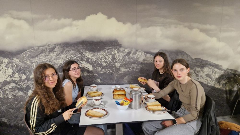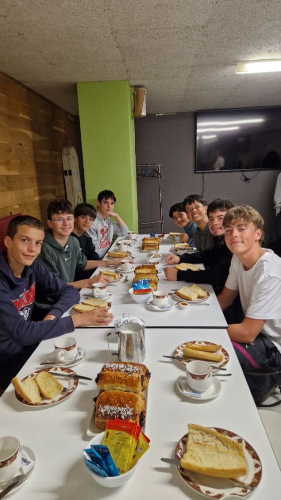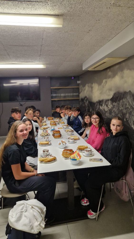 Après une nuit de voyage, pause déjeuner appréciée pour les élèves hispanisants, histoire de bien commencer la journée